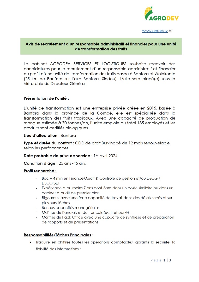 Avis de recrutment d'un Responsable adminis...